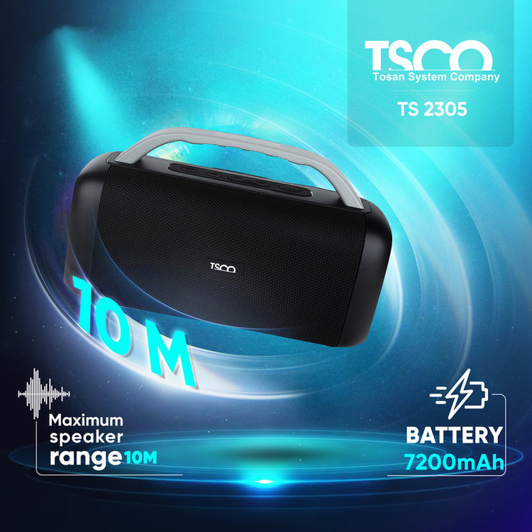اسپیکر بلوتوثی قابل حمل تسکو مدل TS 2305 یک همراه همیشگی و قابل اعتماد برای لذت بردن از موسیقی در هر زمان و مکان است. این اسپیکر با طراحی کوچک و جمعوجور خود امکان حمل و جابهجایی آسان را برای شما فراهم میکند تا بتوانید از صدای باکیفیت آن در هر شرایطی بهرهمند شوید. یکی از مهمترین ویژگیهای این اسپیکر، کیفیت صدای عالی و توان خروجی مناسب آن است. با بهرهگیری از دو عدد بلندگوی قدرتمند 15 وات، این اسپیکر صدایی شفاف، پرقدرت و پربازه ارائه میدهد که باعث میشود انواع صداها را دقیقا به همان شکلی که هستند بشنوید. این اسپیکر بازه صوتی 150 تا 20 هزار هرتز را به صورت کامل پوشش میدهد و به همین خاطر میتوانید کلیه جزئیات آهنگ را با دقت کامل بشنوید. علاوه بر کیفیت صدا، این اسپیکر تسکو از قابلیتهای متنوعی نیز برخوردار است. قابلیت اتصال بلوتوثی با دامنهی 10 متری، امکان پخش موسیقی بیسیم را از گوشیهوشمند، تبلت و سایر دستگاههای شما فراهم میآورد. همچنین، وجود درگاههای کارت حافظه، فلشمموری و USB امکان پخش موسیقی از روی این رسانهها را نیز برای شما مهیا میکند. یکی دیگر از ویژگیهای برجسته این محصول، باتری با دوام بالای آن است. باتری داخلی 7200 میلیآمپر ساعتی این اسپیکر، امکان پخش موسیقی تا 8 ساعت را برای شما فراهم میآورد. بنابراین، میتوانید این اسپیکر را همراه خود در سفرها، پیکنیکها و سایر مناسبتها داشته باشید و از لذت موسیقی بیوقفه بهرهمند شوید. بهطورکلی، اسپیکر بلوتوثی قابل حمل تسکو مدل TS 2305 با ترکیب ویژگیهای متنوع و کاربردی خود، گزینهای ایدهآل برای همراهی همیشگی شما در هر شرایطی است. پس اگر به دنبال یک اسپیکر صوتی باکیفیت هستید که بتوانید به راحتی همراه خود داشته باشید، این محصول تسکو پاسخ مناسبی برای شما خواهد بود.