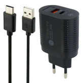 بدنه ای مقاوم با طراحی شیاردار و قابلیت حمل آسان، دارای یک درگاه USB و ۱ پورت تایپ سی پشتیبانی از فناوری شارژ سریع QC۳.۰ و شارژ هوشمند پاور دلیوری، کسب استاندارد های CE و FCC ارائه توان خروجی کلی ۲۰ وات و شارژ انواع دستگاه هوشمند سازگار با حداکثر شدت جریان خروجی ۴ آمپر در ۵ ولت امکان محافظت از دستگاه های متصل کاربر در برابر ورود ولتاژ و جریان بیش از حد، اتصال کوتاه، افزایش بیش از حد حرارت و … همراه با کابل شارژ Type-C مقاوم در برابر کشش و پارگی دارای روکش از جنس TPE، مجهز به نمایشگر LED در بخش بالایی بدنه شارژر