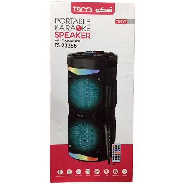 اسپیکر های قابل حمل یا پرتابل در موقعیت های مختلف اعم از مهمانی ها، سفر،ورزش و پیاده روی بسیار کاربرد دارند و برای دوست داران موسیقی از لوازم جانبی ضروری به شمار می آیند.شما میتوانید در هر موقعیت و زمانی با وجود یک اسپیکر قابل حمل و قدرتمند به موسیقی گوش سپرده و لذت ببرید. شرکت تسکو که اسپیکرهای پرتابل محبوب و متنوعی را به بازار ارائه کرده، اینبار محصولی قدرتمند، قابل حمل در عین حال زیبا را تولید و به سبد کالا هایش اضافه کرده که در ادامه آن را معرفی خواهیم کرد. این محصول که از جدید ترین اسپیکرهای این برند است در ابعاد 19.7x20.1x44.2 و وزن 1770 گرم به رنگ مشکی طراحی و تولید شده است. انرژی مورد نیاز اسپیکر زیبای برند تسکو مدل TS 23355 که به تازگی به سبد اسپیکر های پرتابل این برند اضافه شده،از یک باتری 2400 میلی آمپری از نوع لیتیومی تامین میشود که به 4 ساعت زمان نیاز دارد تا به طور کامل شارژ شود. شما میتوانید از طریق بلوتوث ورژن 5.0 به این دستگاه متصل شوید که محدوده عملکرد تا فاصله ی 10 متر بدون هرگونه قطع شدن را دارد.علاوه بر این از دیگر روش های اتصال به این اسپیکر قدرتمند میتوان به اتصال از طریق USB/TF CARD/AUX اشاره کرد. از دیگر ویژگی های این اسپیکر میتوان به مجهز بودن آن به فناوری TWS وپشتیبانی از رادیو و عملکرد KARAOKE اشاره کرد که از مهم ترین مزیت های آن به شمار می آید. اسپیکر تسکو مدل TS 23355 دارای یک نمایشگر LED برای نمایش عملکرد محصول و نورپردازی بسیار جذابی است که باعث زیبایی هرچه بیشتر این اسپیکر کاربردی شده،اقلام همراه اسپیکر تسکو مدل TS 23355 شامل یک ریموت کنترل،میکروفن سیمی،دفترچه ی راهنما و کابل USB میشود.